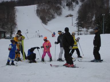 この行事は親子を対象としたスキー教室で、昨年から始まり今年が2回目となります。(昨年は「スノータウン イエティ」で開催されました。)湘南スキークラブからは役員・講師として椎橋さん、水野さん、北田さん、佐藤。参加者として矢吹さん親子(夏南ちゃん、晴南ちゃん)と我が息子(圭一朗)が参加しました。(他のクラブからは、椿原協会長、深渡さん[伊勢原スキークラブ]、江口さん[産能大スキー同好会]、出口さん[山とスキーの会])